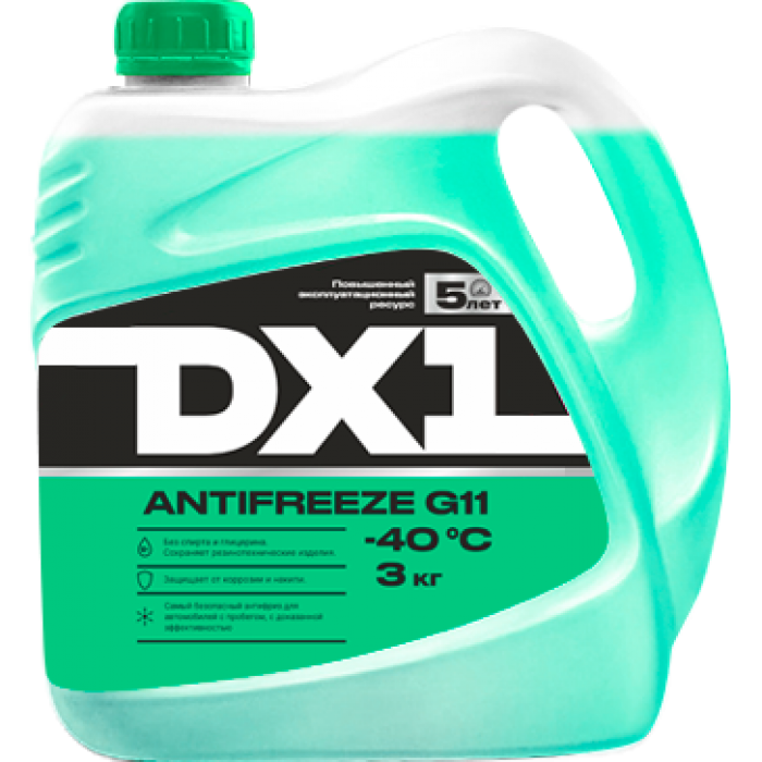Антифриз торговой марки DX1 изготовлен на основе этиленгликоля и обладает выдающимися антикоррозионными свойствами. Не агрессивен по отношению к резинотехническим изделиям. Отлично смазывает детали системы охлаждения, предотвращает их преждевременный износ. Содержит специальные присадки, предотвращающие вспенивание, благодаря чему исключается перегрев двигателя, присутствие флуоресцирующего красителя позволит легко обнаружить место утечки. Использование антифриза DX1, содержащего сбалансированный пакет присадок, продлевает срок службы деталей системы охлаждения автомобиля в 1,5-2 раза.